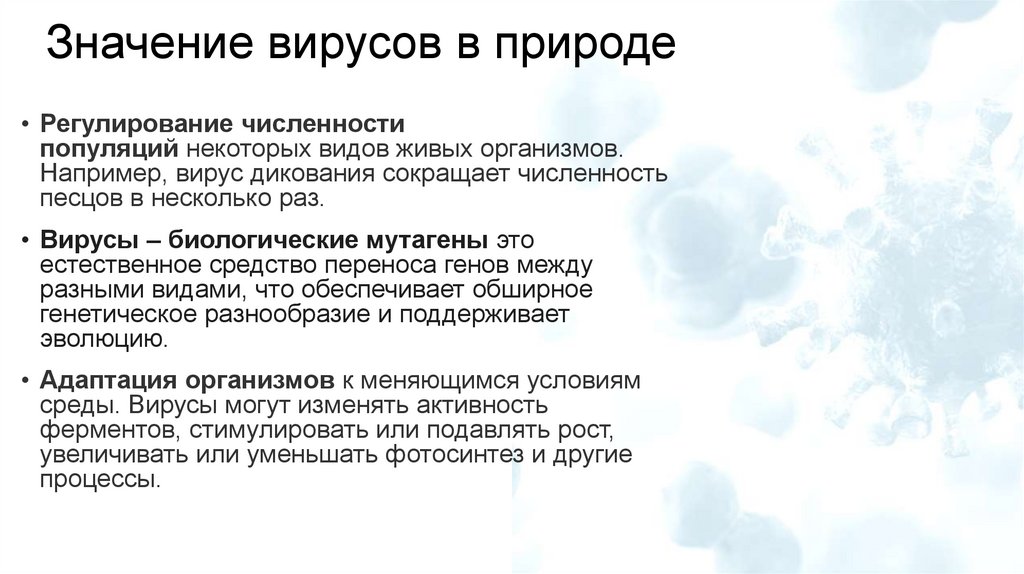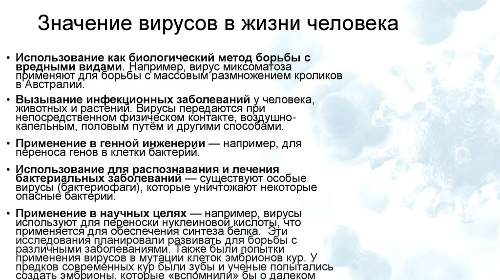 Значение вирусов в жизни человека• Использование как биологический метод борьбы с