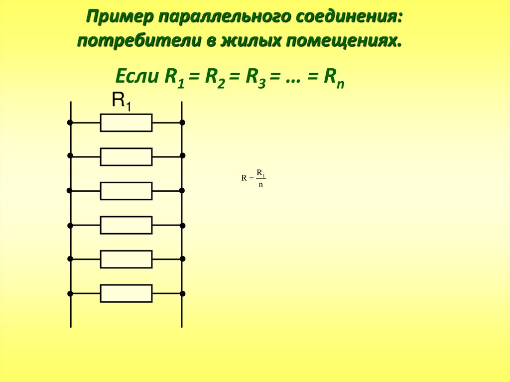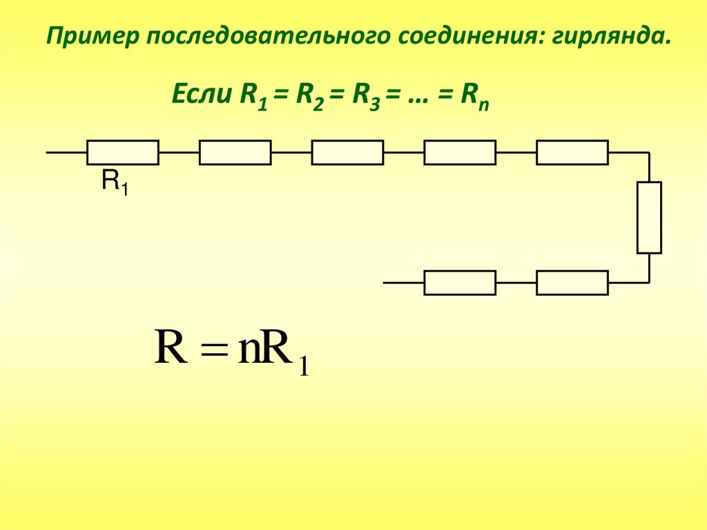 Пример последовательного соединения: гирлянда.Если R1 = R2 = R3 = … = Rn