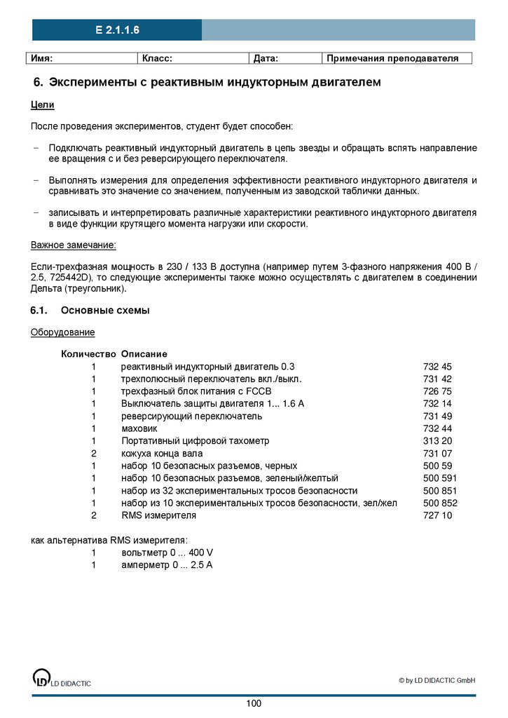 входят в объем поставки. В этом случае могут выполняться только те эксперименты, для которых ЛД