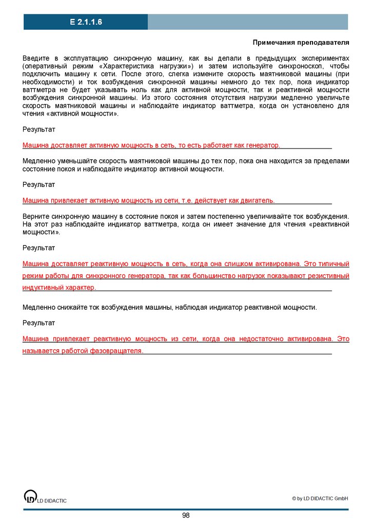 Это выражение является описательным для рабочих режимов, которые синхронная машина