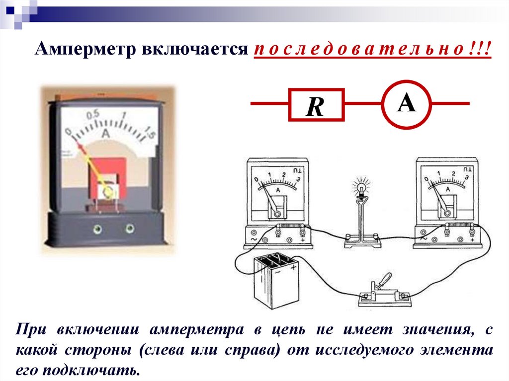 Амперметр включается п о с л е д о в а т е л ь н о !!!R