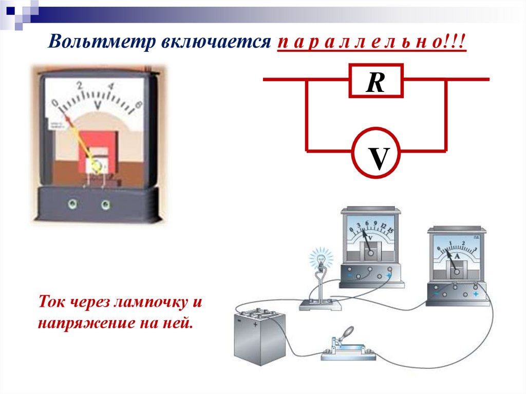 Вольтметр включается п а р а л л е л ь н о!!!R