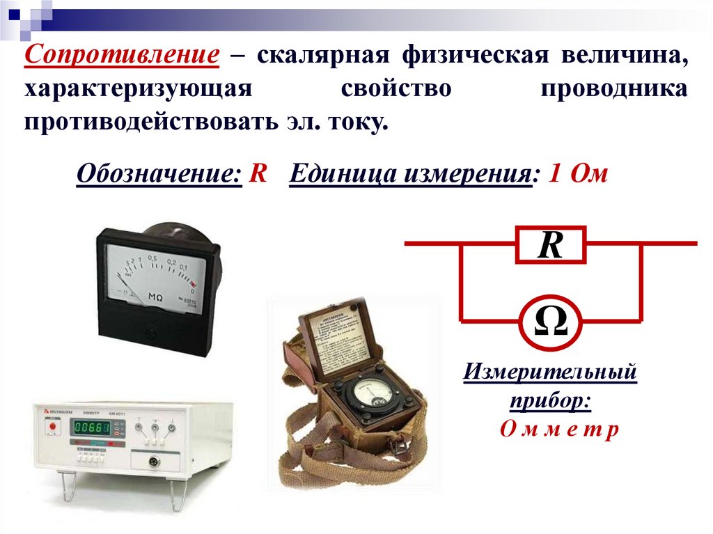 Обозначение: R Единица измерения: 1 Ом