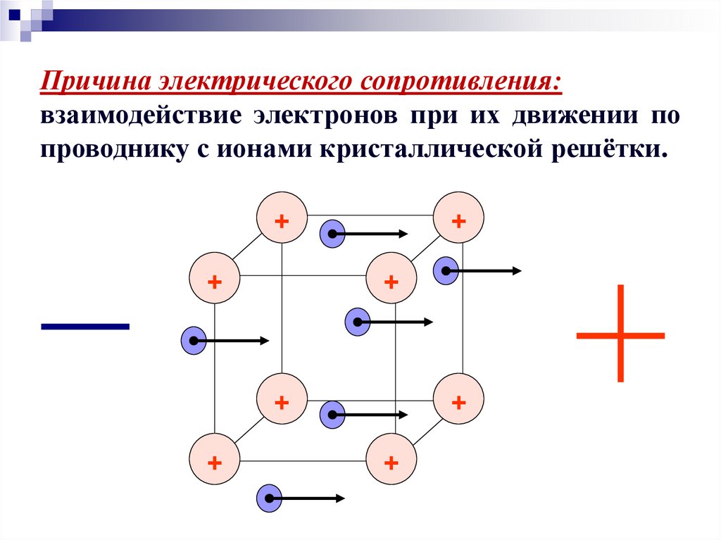 Причина электрического сопротивления:взаимодействие электронов при их движении по