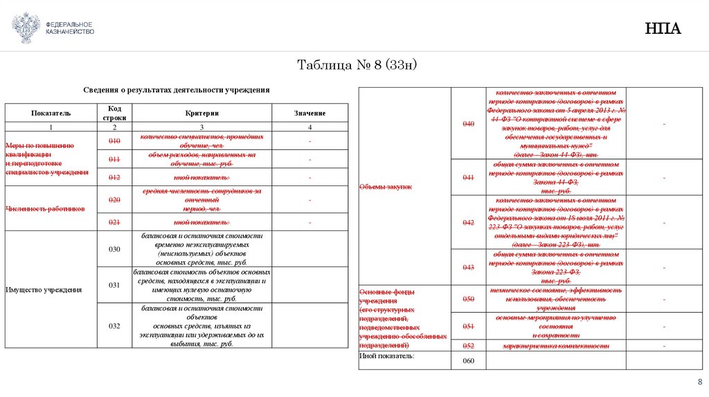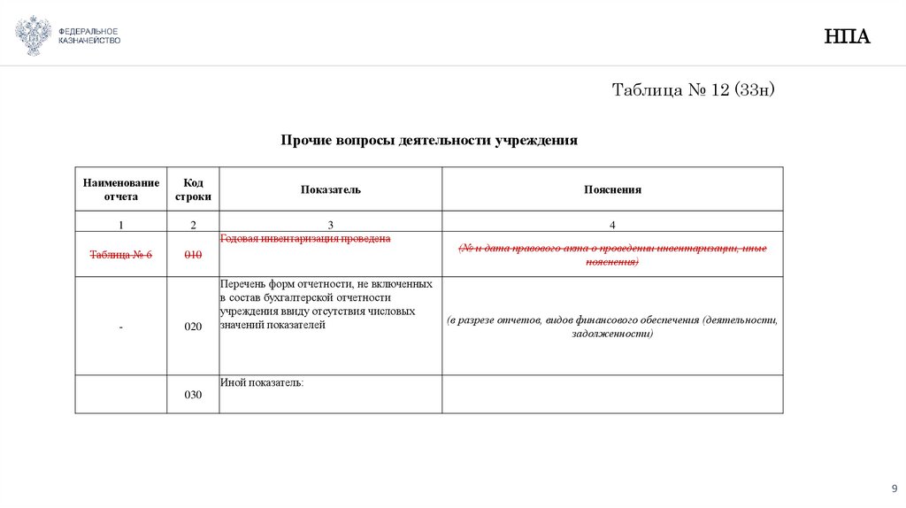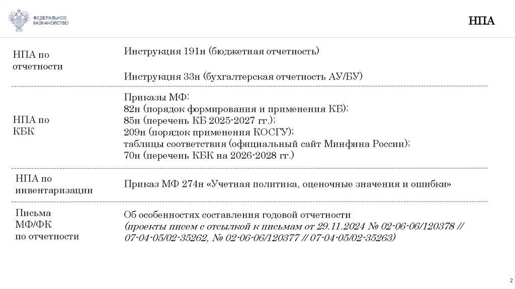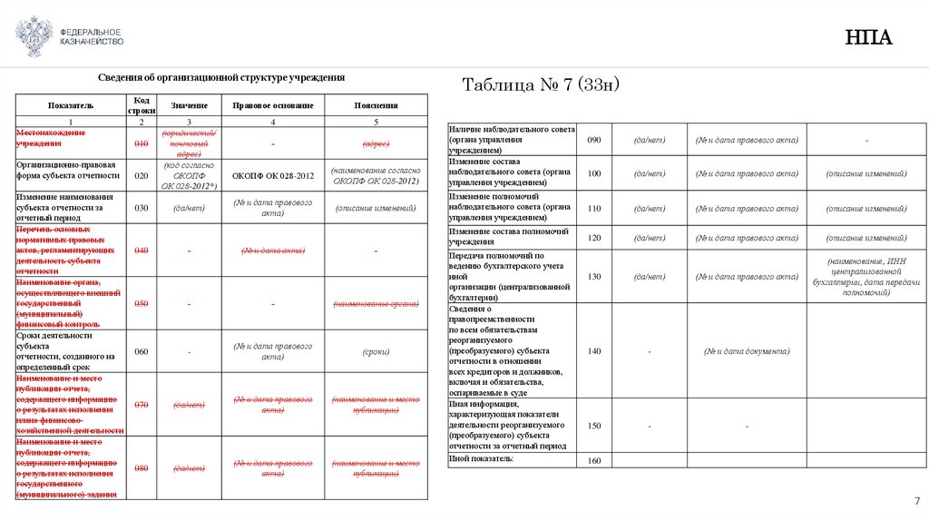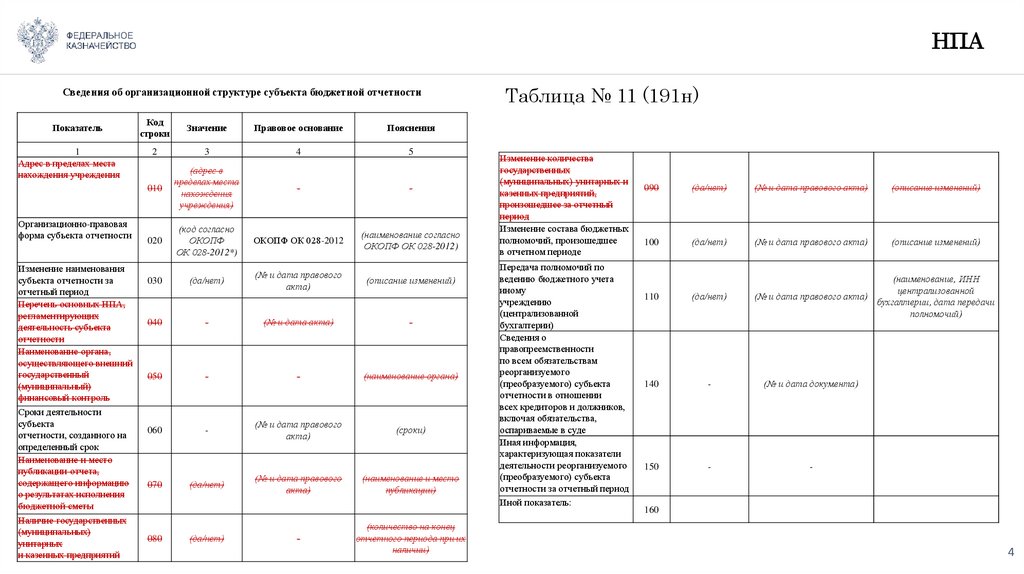 НПАСведения об организационной структуре субъекта бюджетной отчетности