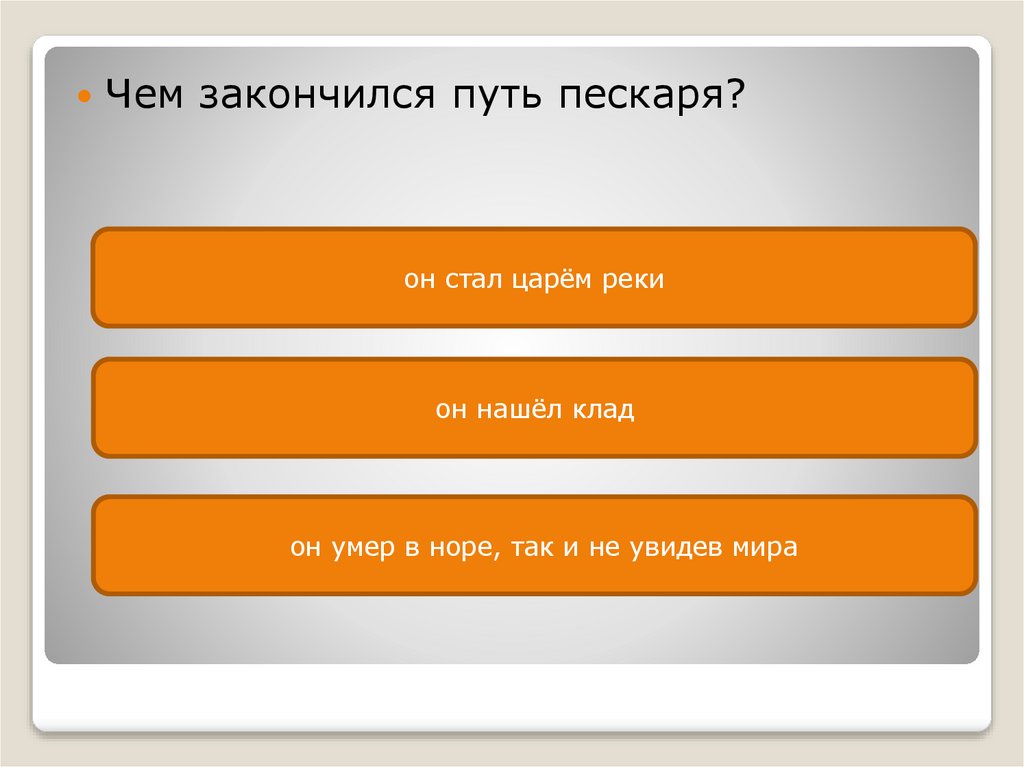В сказке «Премудрый пескарь» геройвсю жизнь…