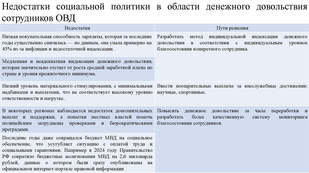 Недостатки социальной политики в области денежного довольствиясотрудников ОВД