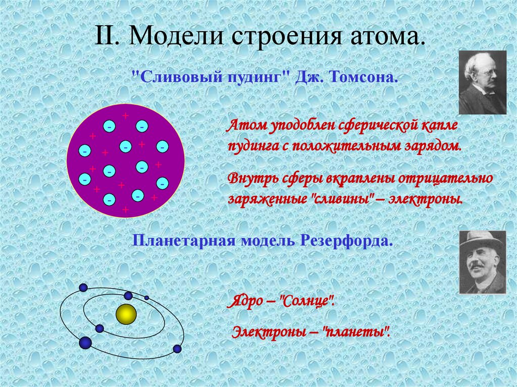 II. Модели строения атома."Сливовый пудинг" Дж. Томсона.