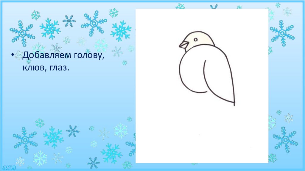 • Добавляем голову,клюв, глаз.