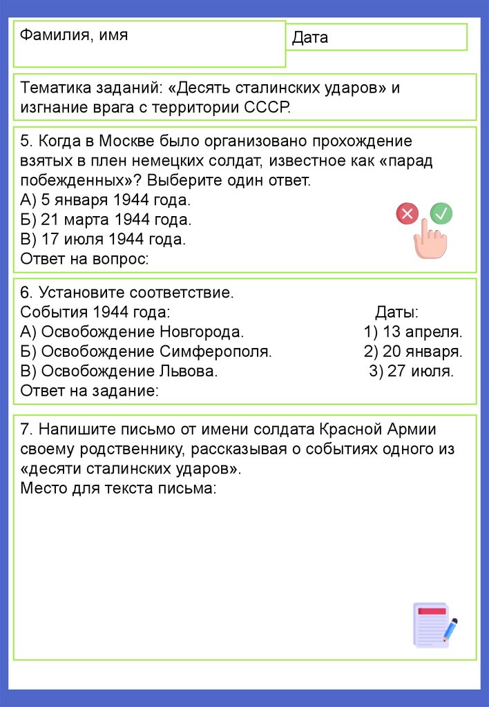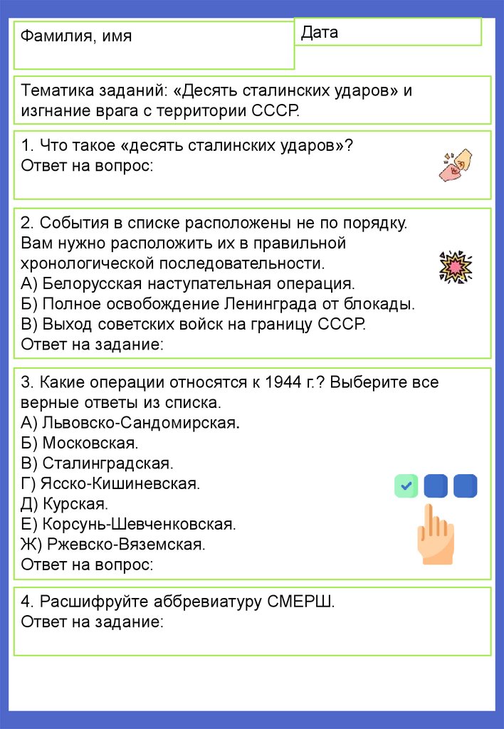 Тематика заданий: «Десять сталинских ударов» и
