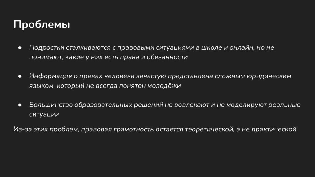 ПроблемыПодростки сталкиваются с правовыми ситуациями в школе и онлайн, но не