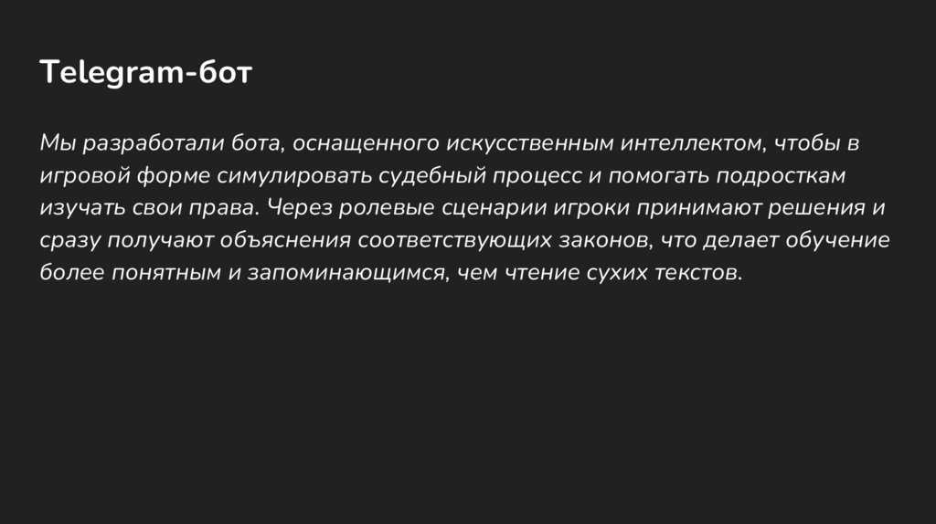 ● Telegram-бот, симулирующий процесс судебного заседания на любом
