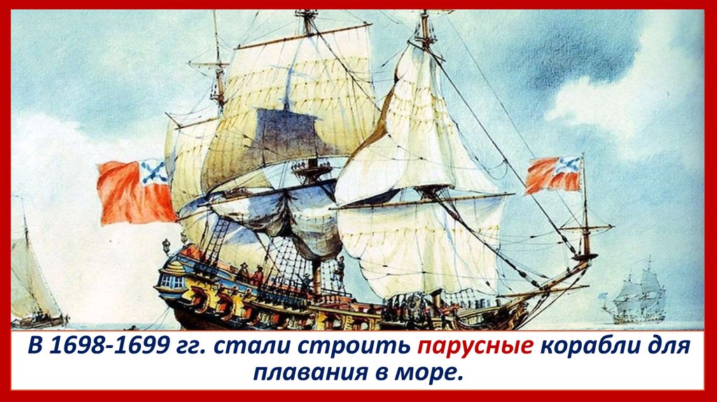 В 1698-1699 гг. стали строить парусные корабли для