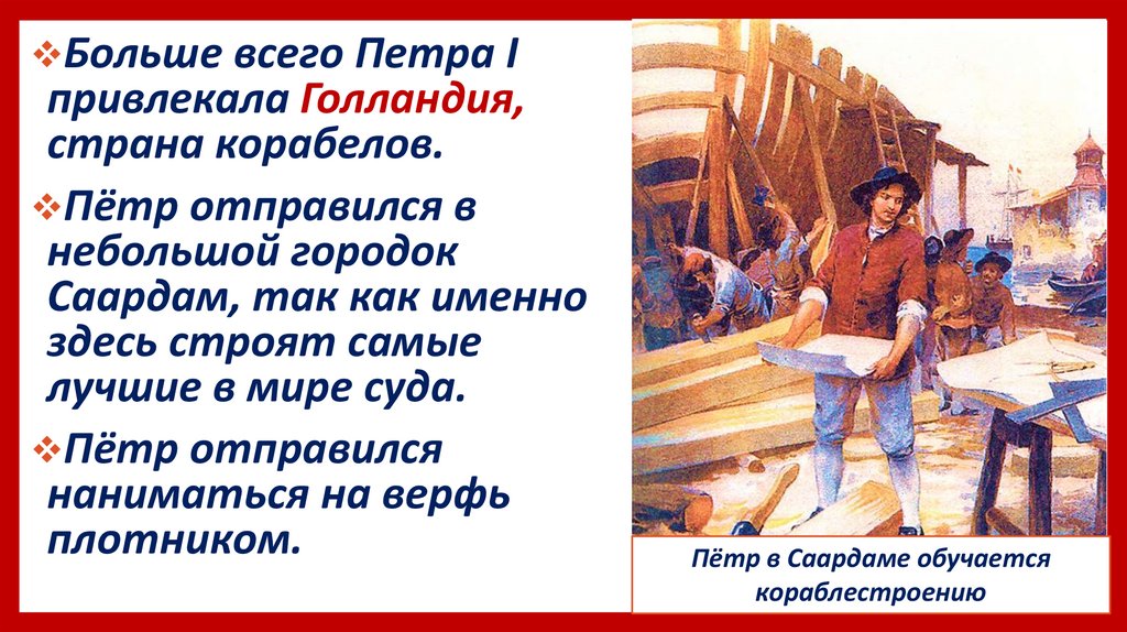 Больше всего Петра Iпривлекала Голландия,