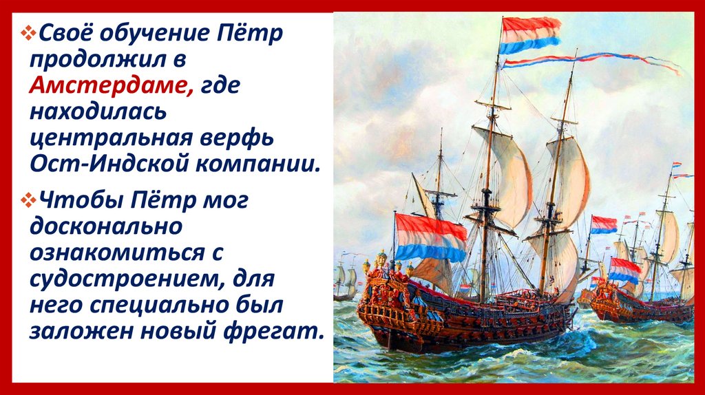 В начале 1698 г. Пётр отправился вАнглию, где продолжил изучать