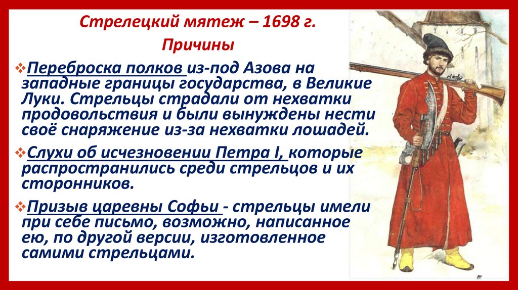 Стрелецкий мятеж – 1698 г.Причины