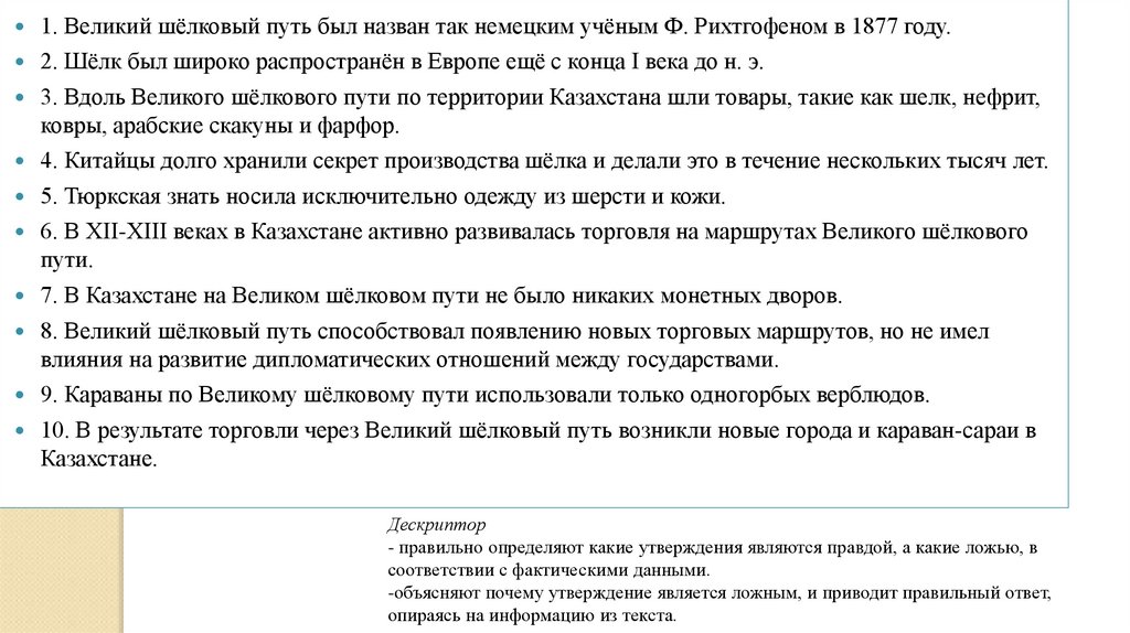 8. Великий шёлковый путь способствовал появлению новых торговых маршрутов, но не имел