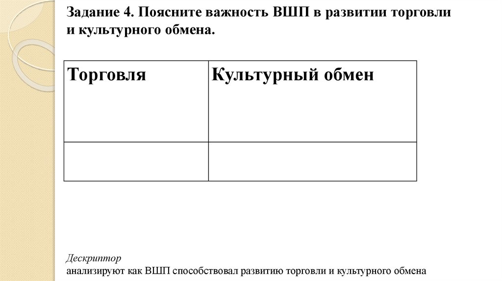 Задание 4. Поясните важность ВШП в развитии торговлии культурного обмена.