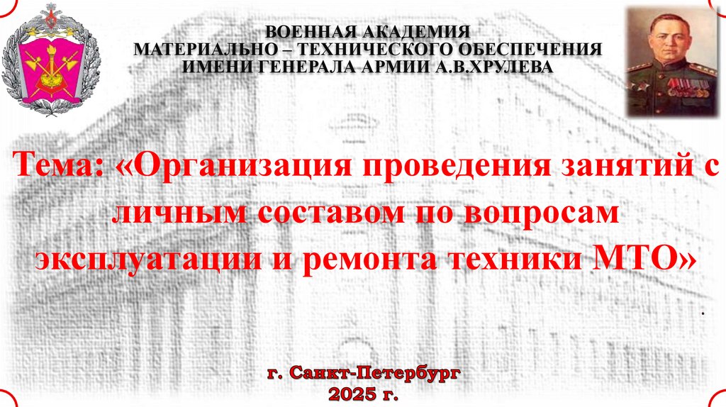 ВОЕННАЯ АКАДЕМИЯМАТЕРИАЛЬНО – ТЕХНИЧЕСКОГО ОБЕСПЕЧЕНИЯ