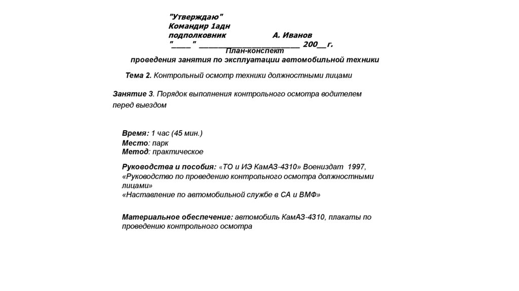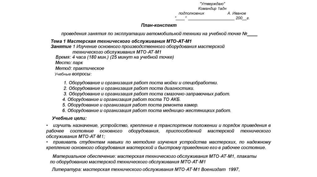 Материальное обеспечение: мастерская технического обслуживания МТО-АТ-М1, плакаты