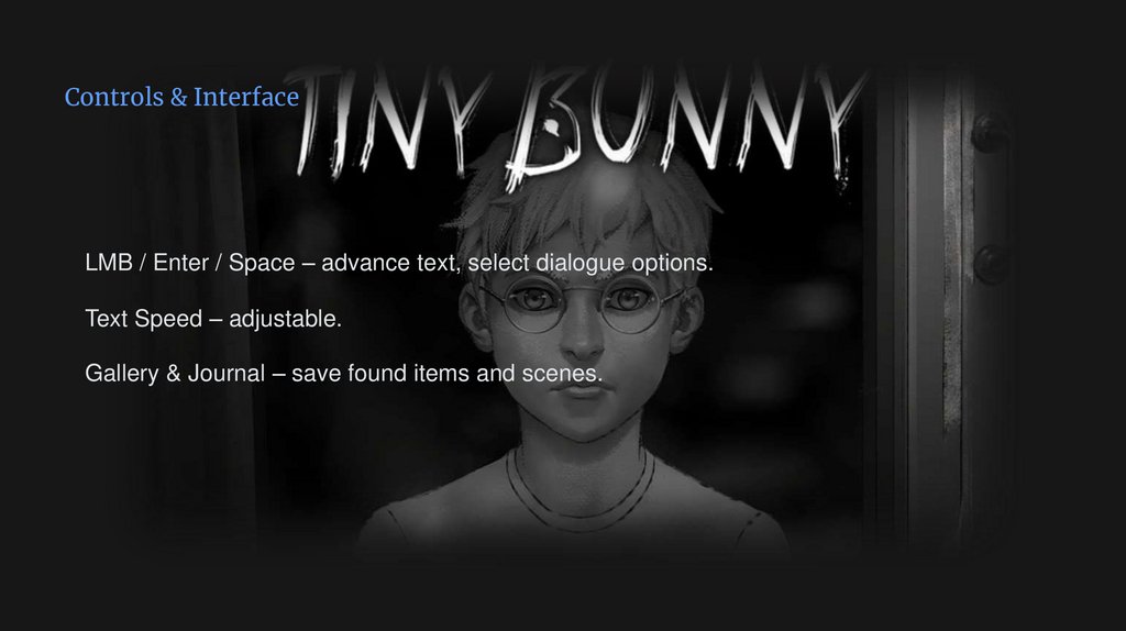 Controls & InterfaceLMB / Enter / Space – advance text, select dialogue options.