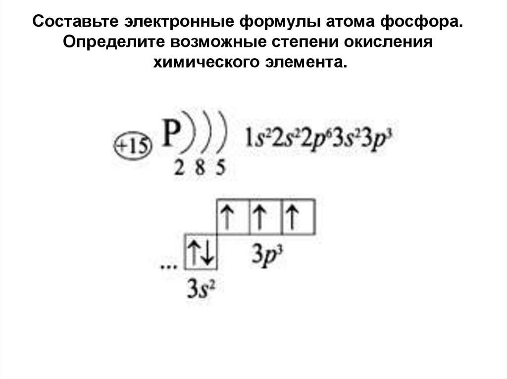 Составьте электронные формулы атома фосфора.Определите возможные степени окисления