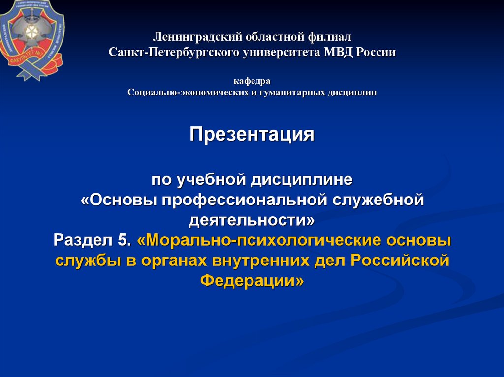 1. Ленинградский областной филиал Санкт-Петербургского университета МВД России кафедра Социально-экономических и гуманитарных