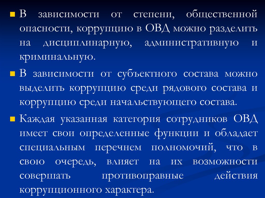 опасности, коррупцию в ОВД можно разделить