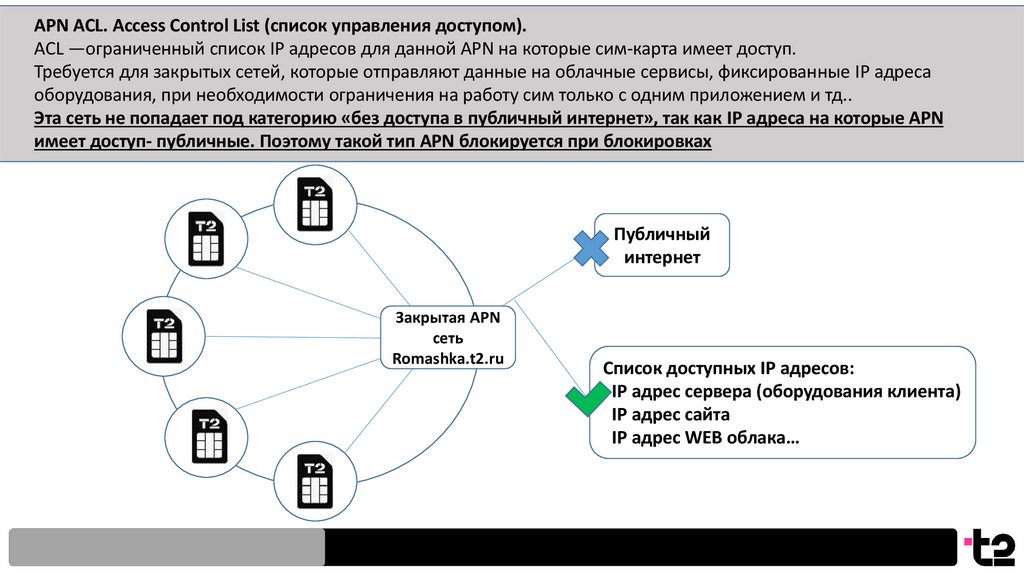 APN ACL. Access Control List (список управления доступом).ACL —ограниченный список IP адресов для данной APN на которые сим-карта имеет доступ.
