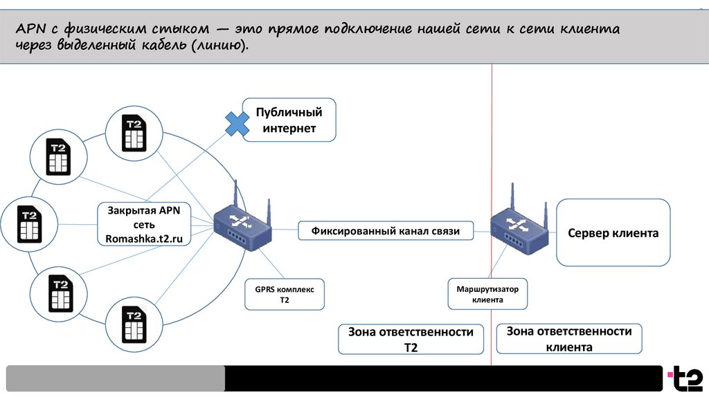 APN с физическим стыком — это прямое подключение нашей сети к сети клиентачерез выделенный кабель (линию).