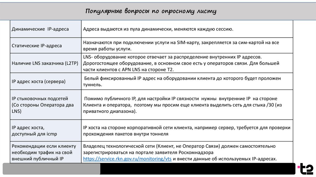Популярные вопросы по опросному листуДинамические IP-адреса