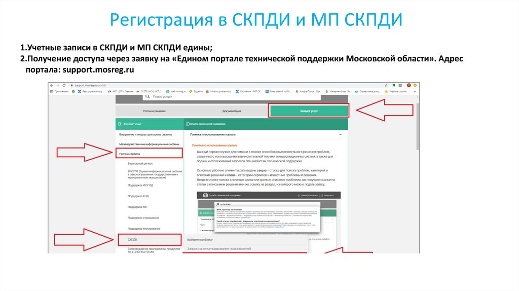 2.Получение доступа через заявку на «Едином портале технической поддержки Московской области». Адрес