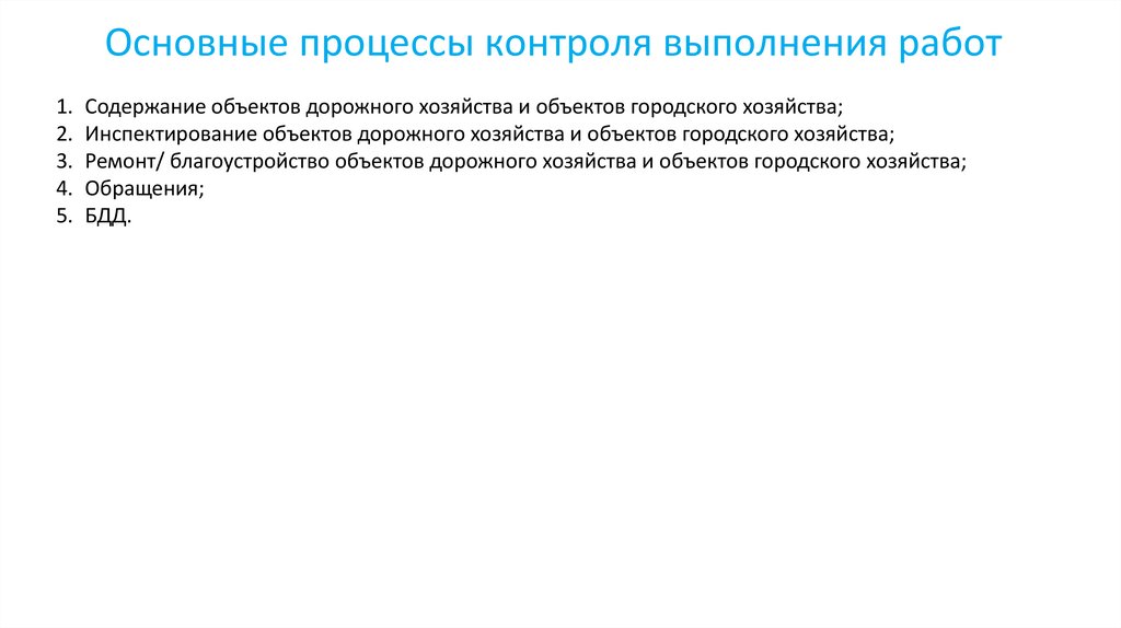 Основные процессы контроля выполнения работ1. Содержание объектов дорожного хозяйства и объектов городского хозяйства;