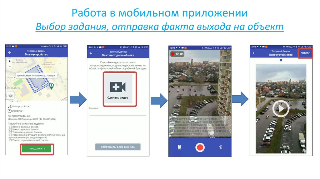 2. Ежедневно исполнители берут задания в работу, записывают видео – факт выхода на объект, в конце дня отчет о