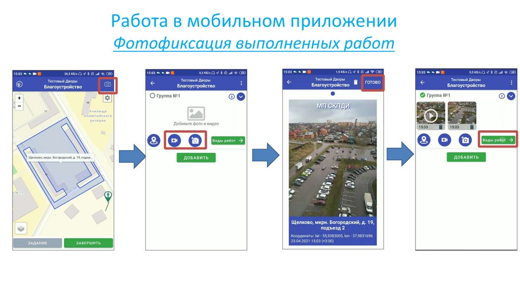 Работа в мобильном приложенииФотофиксация выполненных работ