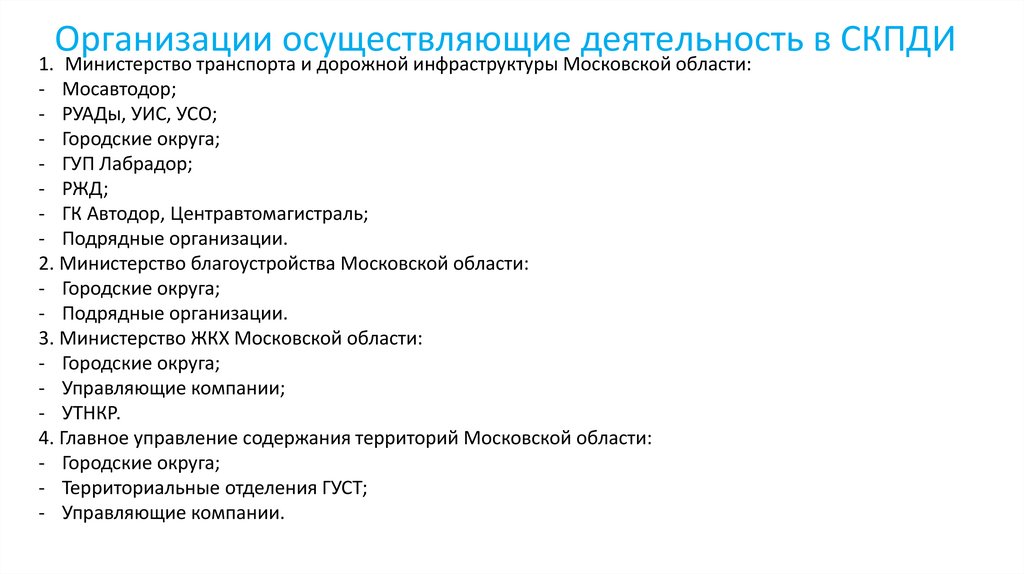 Организации осуществляющие деятельность в СКПДИ1. Министерство транспорта и дорожной инфраструктуры Московской области: