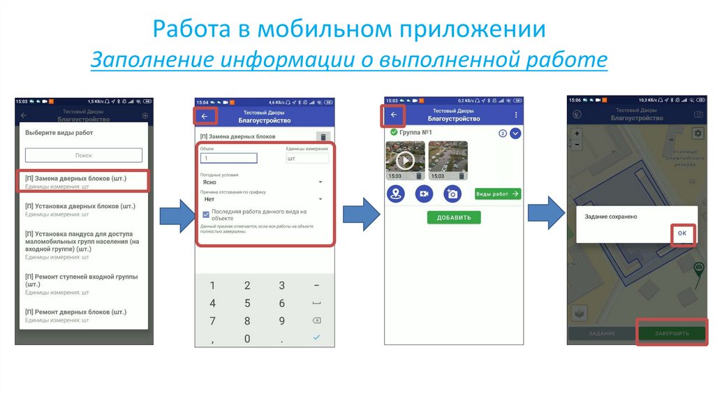 Работа в мобильном приложенииЗаполнение информации о выполненной работе