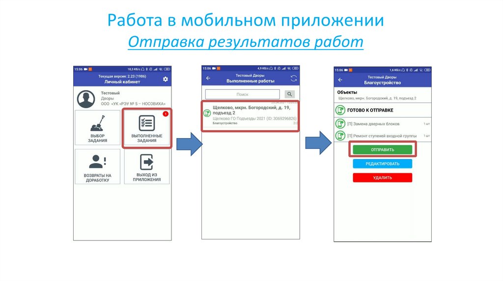 Работа в мобильном приложенииОтправка результатов работ