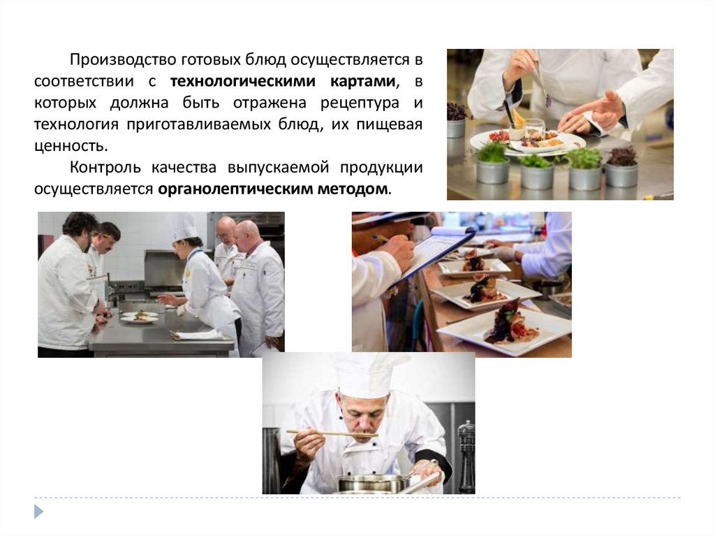 Производство готовых блюд осуществляется всоответствии с технологическими картами, в