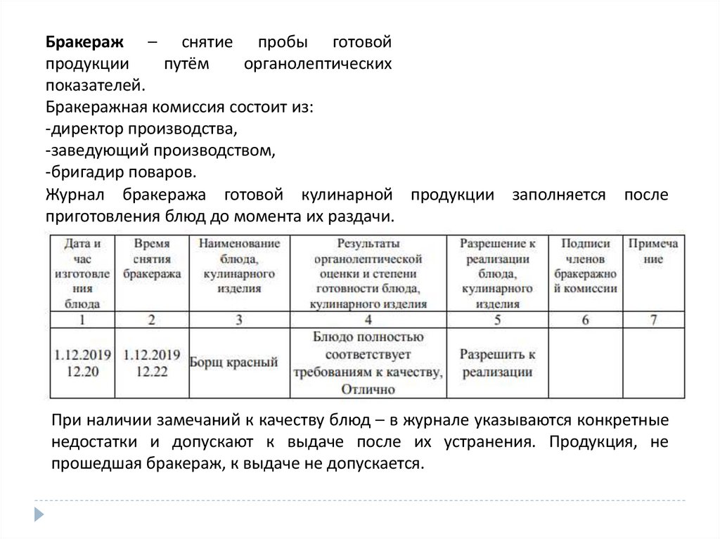 Журнал бракеража готовой кулинарной продукции заполняется после