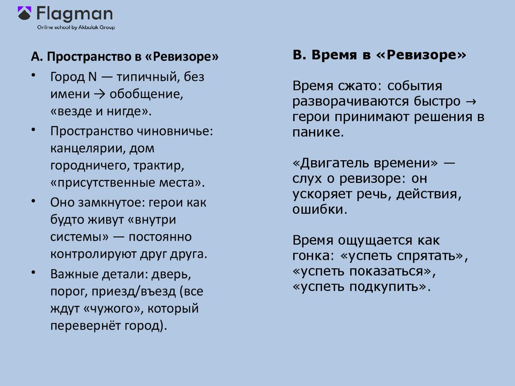 A. Пространство в «Ревизоре»• Город N — типичный, без