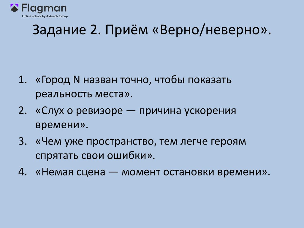 Задание 2. Приём «Верно/неверно».1. «Город N назван точно, чтобы показать