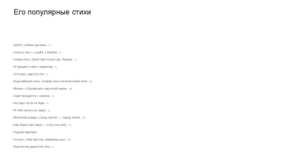Его популярные стихи«Шепот, робкое дыханье...»;