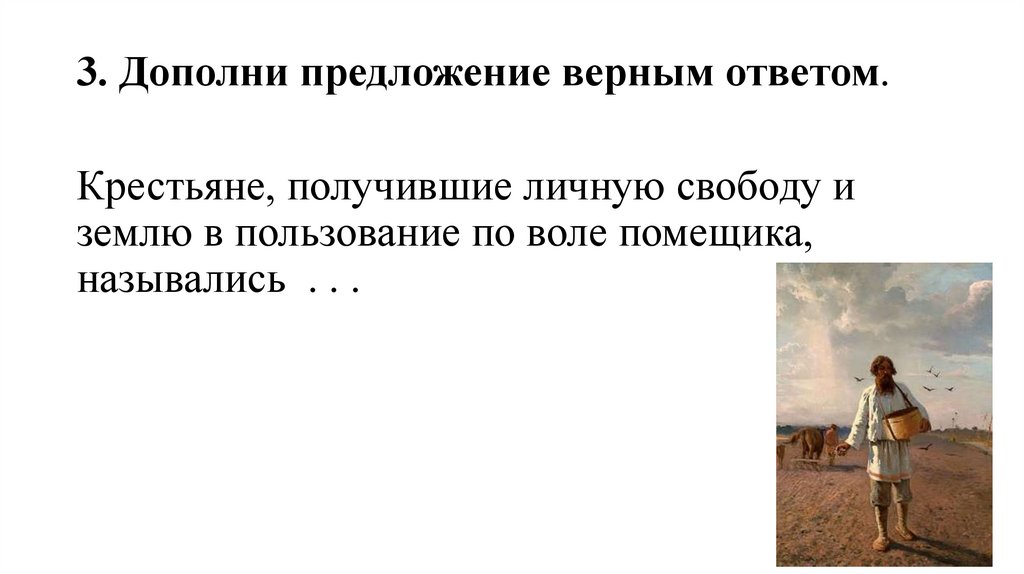 3. Дополни предложение верным ответом.Крестьяне, получившие личную свободу и