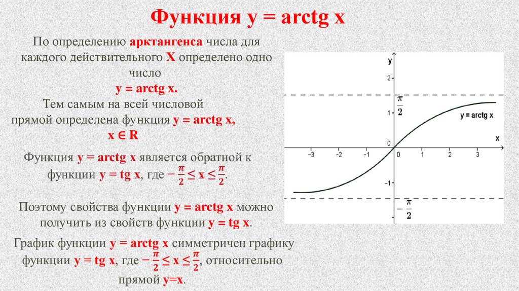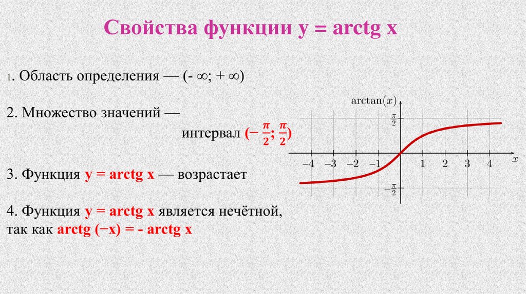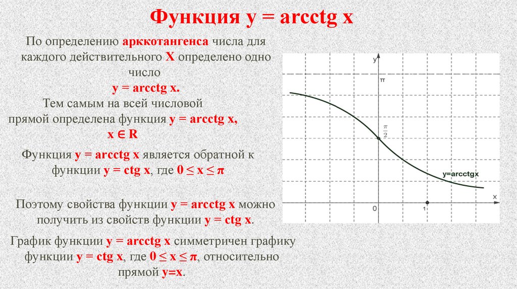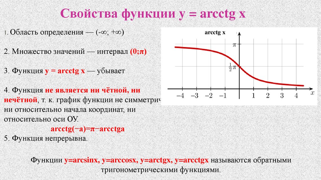 Свойства функции y = arcсtg x1. Область определения — (-∞; +∞)
