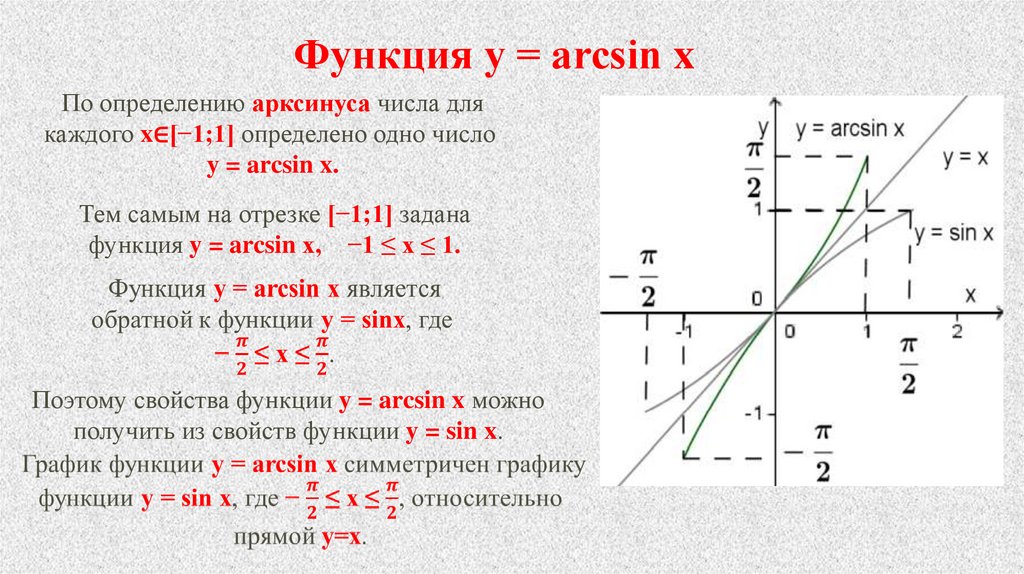функция y = arcsin x, −1 ≤ x ≤ 1.