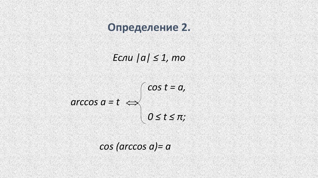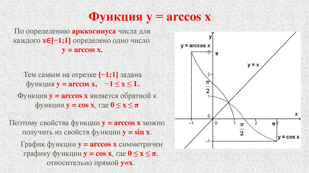 Свойства функции y = arccos x1. Область определения — отрезок [−1;1]