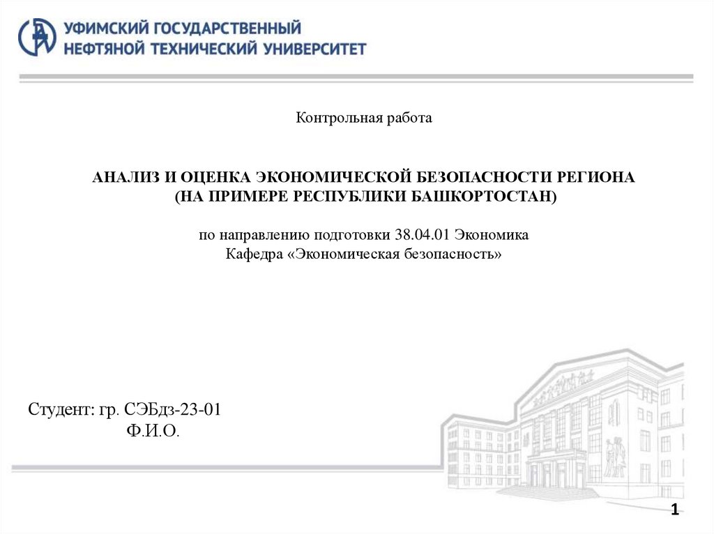 Контрольная работаАНАЛИЗ И ОЦЕНКА ЭКОНОМИЧЕСКОЙ БЕЗОПАСНОСТИ РЕГИОНА