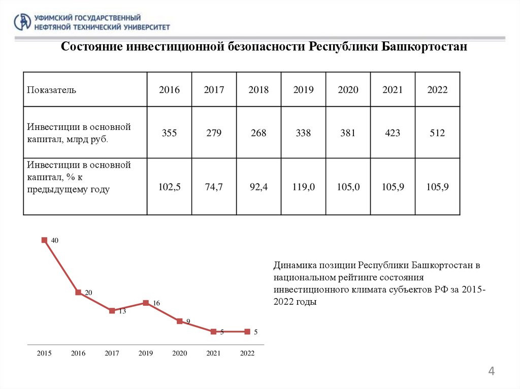 Состояние инвестиционной безопасности Республики БашкортостанПоказатель