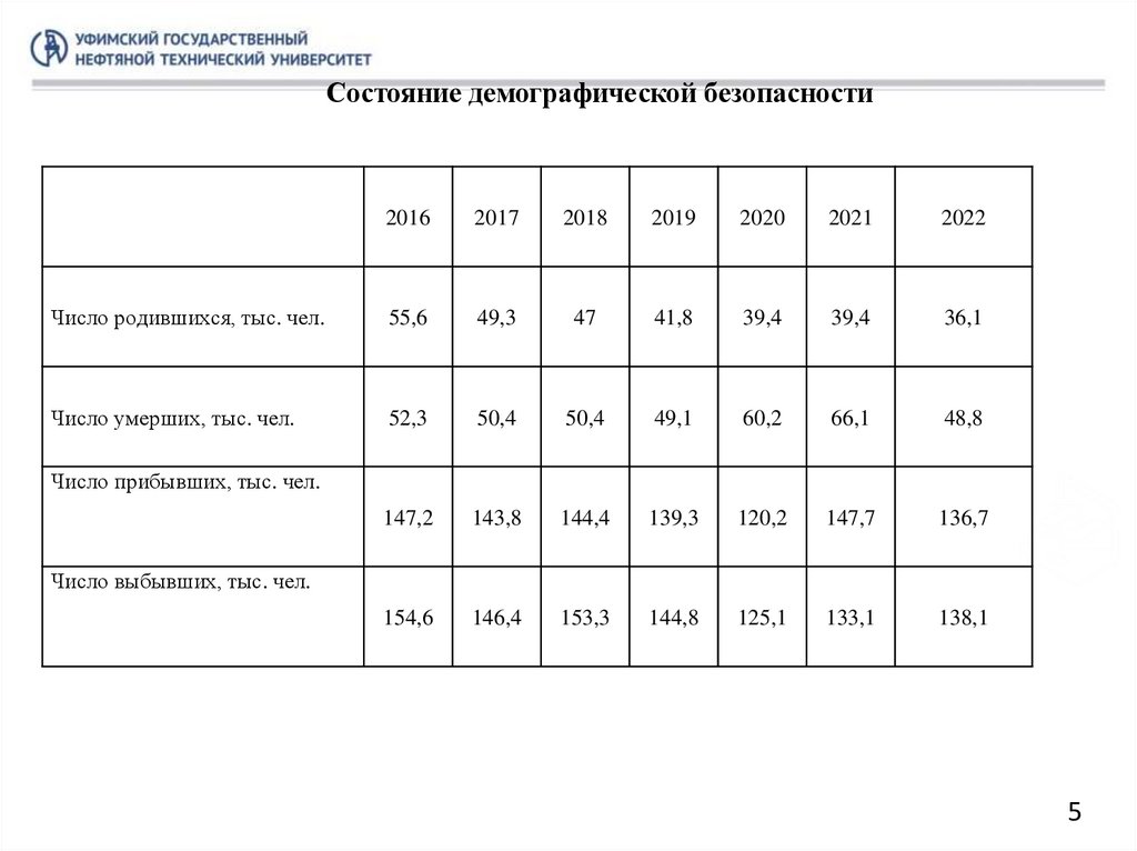 Республики Башкортостан, представленных официальными статистическими